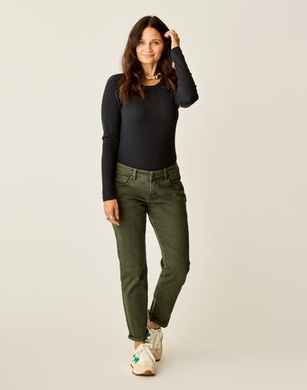 A slimmed down spin on the boyfriend cut, the Carson is everything you want a good pair of jeans to be. Sleek yet casual, relaxed with a little stretch. Wear them cuffed for a cropped length or rock the raw hem.