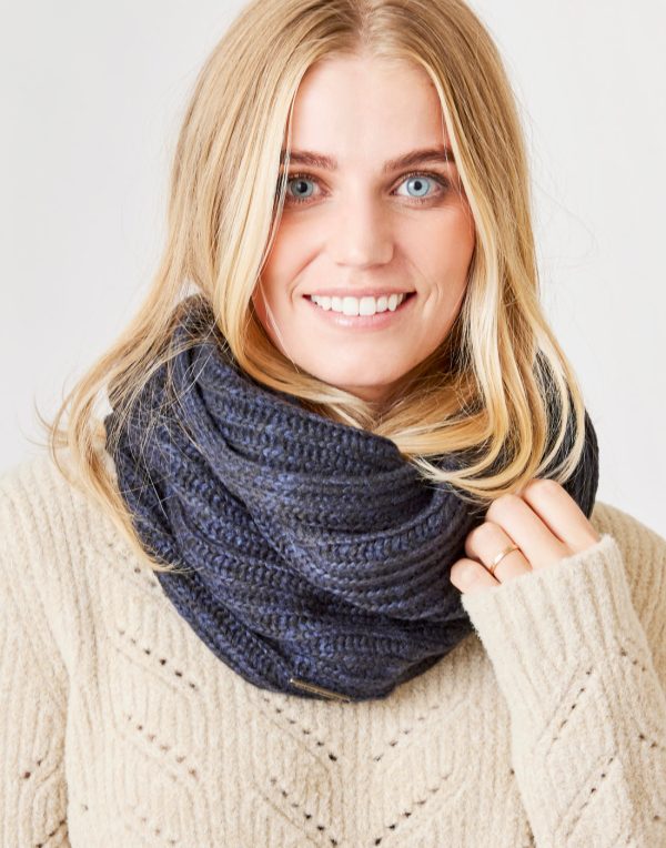 A textured infinity scarf. The Julie is the ultimate cozy accessory — the kind of scarf you can pull over your face and sleep in on those red-eye flights. Pairs well with jeans, your favorite sweater, and hot cocoa at the lodge.